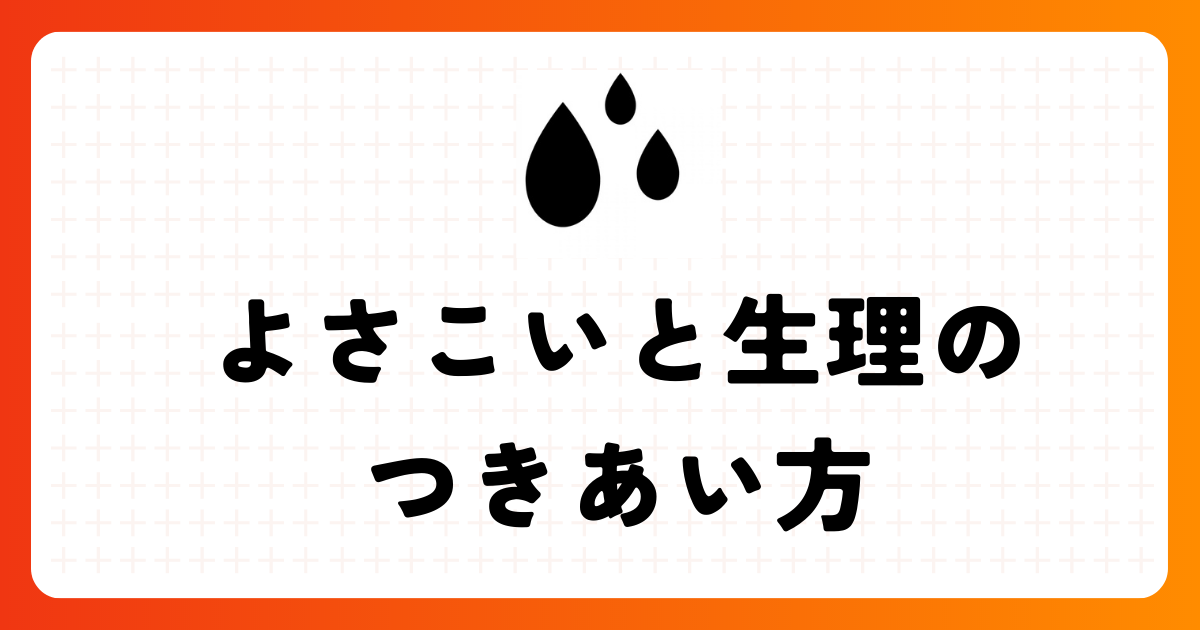よさこいの練習から本番までの間、生理の対策をどうしようか悩んでいる女性も多いかもしれません。
